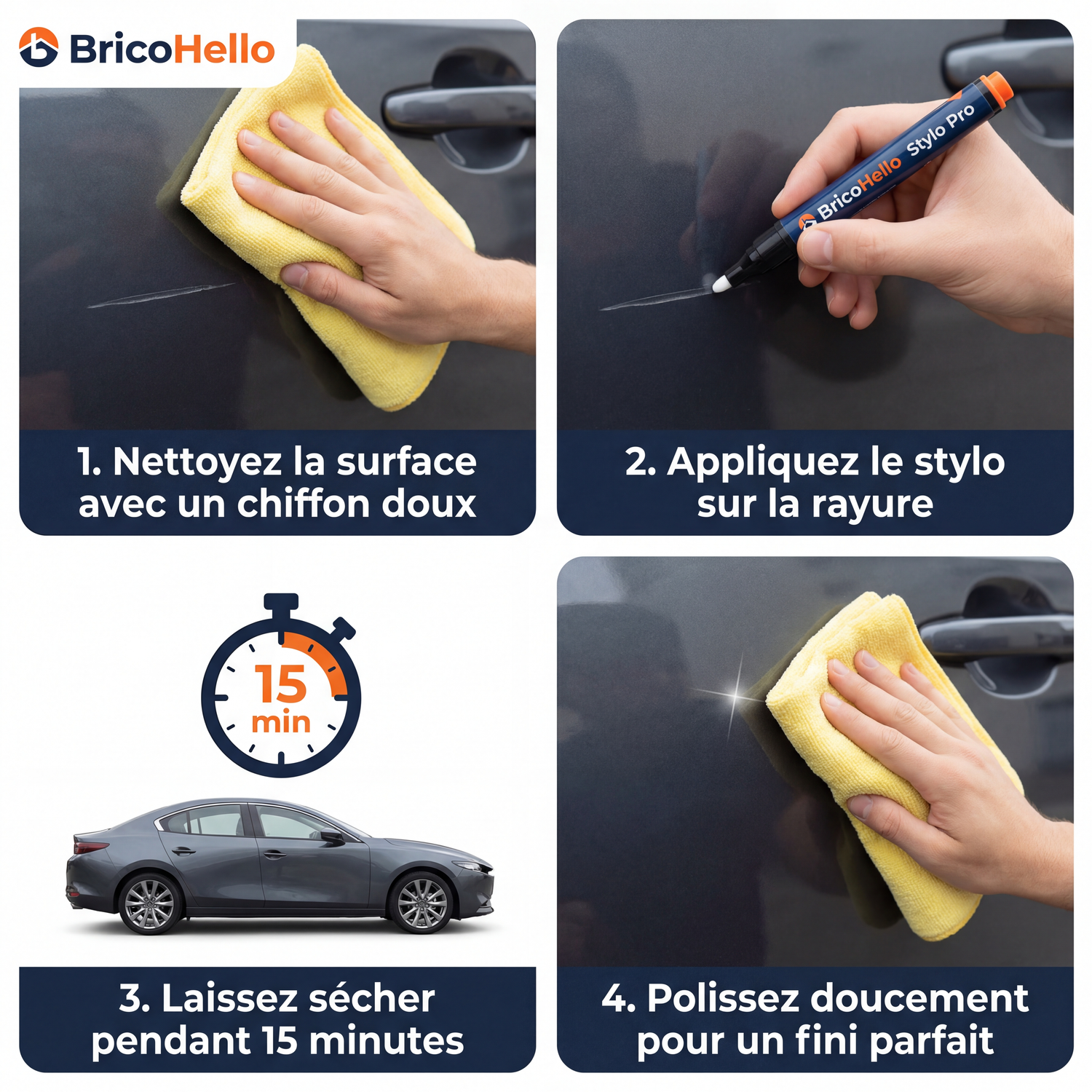 👉 Astuce : pour un rendu encore plus discret, appliquez le stylo à l’ombre et sur une carrosserie froide.